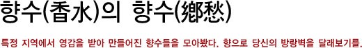특정 지역에서 영감을 받아 만들어진 향수들을 모아봤다. 향으로 당신의 방랑벽을 달래보기를.<br><Br>[2008년 8월호]