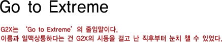 G2X는 `Go to Extreme`의 줄임말이다. 이름과 일맥상통하다는 건 G2X의 시동을 걸고 난 직후부터 눈치 챌 수 있었다.<br><Br>[2008년 8월호]