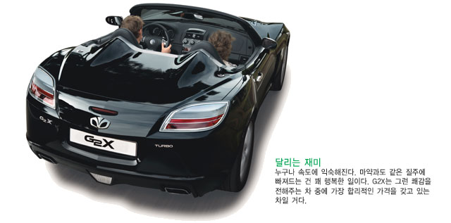 G2X는 일반 세단을 선호하는 지극히 한국적인 사람들에겐 낯선 모습이다. 물론 반할 만한 디자인이라는 것엔 누구나 동의할 거다. 이 차는 가속페달을 밟았을 때 어떤 반응을 보일지 외관만 보고도 짐작할 수 있을 정도로 고전적인 스포츠카의 모습을 자랑할 만하니까.