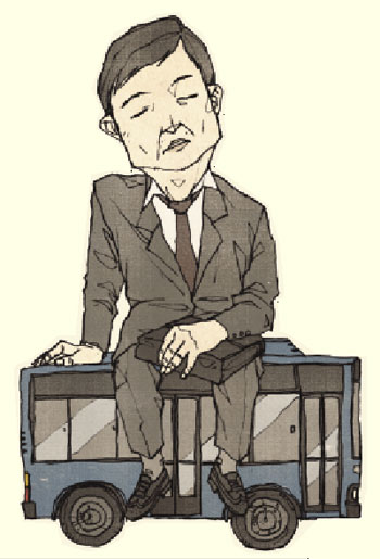 외모 약간의 사각턱에 살짝 찢어진 눈. 175cm 정도의 키, 적당히 나온 배, 어깨에는 가방 하나. 주중 주말 가리지 않고 늘 파크랜드나 GO2 같은 중저가 브랜드만 입는다. 하지만 구두만큼은 세련된 라인이라 믿고 있는 리갈을 즐겨 신는다. 늘 오전 7시에 버스정류장에 나타나는 그의 표정에는 무언가 비장함이 담겨 있다. 행동 일주일 내내 자정 넘어 퇴근하는 그는 가족과 거의 대화를 하지 않으며 일요일에는 언제나 자전거를 타고 호수공원을 라이딩한다. 오후에 집으로 돌아온 그는 자전거를 구석구석 닦고 조이고 기름칠한 뒤 드디어 가족과 함께 집안일을 한다. 이때 그의 복장은 거의 사각팬티 바람이며 1층 길거리에서 자신의 모습이 보인다는 점은 아랑곳하지 않는다. 대화 이사를 가지 않는 이유는 직장이 언제 사라질지 모르기 때문이며, 가장은 오로지 희생정신 하나로 살아가는 존재라고 말한다. 믿을 건 자신의 몸뚱이 하나뿐이고, 희망이랄 것도 없는 비전은 자식들 무사히 키우고 일몰 속으로 사라지는 것이라고 했다. 그에게 발생할 것 같은 극적 사건 정치 논쟁 중 극렬한 폭력 사태에 휘말리는 것. |
