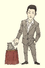 외모 작은 입, 예리하고 찢어진 눈, 깡마른 체구에 큰 키, 한국 어디에서도 볼 수 없는 세련된 옷과 신발은 그의 나이를 가늠할 수 없게 한다. 행동 일년에 1백 일 이상을 유럽 여행에 몰두한다. 여행은 주로 현지 에이전시로부터 온 연락에 의해 시작된다. 그를 움직이게 하는 정보는 유럽 고택의 철거 또는 오래된 관공서의 수리 소식이다. 유럽에 갈 때마다 그는 앞으로 한국 땅에서 보물이 될 유럽의 고물을 컨테이너에 실어 보낸다. 대화 그는 돈 많은 좌파를 꿈꾼다. 문화 예술을 공부하는 사람들을 체계적으로 도와야 한다고 말한다. 그는 유럽 문화를 수입하는 것에서 머물지 않고 유럽의 좌파적 가치를 배우고 싶어한다. 평소 그는 자신이 경영하는 카페에 찾아온 사람들과 문화 토론을 하며 대부분 시간을 보낸다. 그에게 발생할 것 같은 극적 사건 빠른 사세 확장으로 좌파적 인사가 아닌 재벌과 교류하는 컬렉터가 되어 안주해버리는 것. |