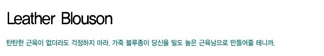 탄탄한 근육이 없더라도 걱정하지 마라. 가죽 블루종이 당신을 밀도 높은 근육남으로 만들어줄 테니까.<br><br>[2008년 10월호]