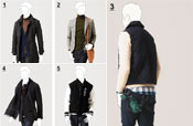 3 네이비 컬러 패딩 베스트 89만3천원 하버색 by 샌프란시스코 마켓, 아이보리 컬러 V넥 스웨터 22만5천원 폴로 랄프 로렌, 블루 컬러 체크 셔츠 22만8천원 서상영, 슬림 핏 생지 데님 8만9천원 테이트, 벨트 고리에 찬 그린 컬러 레더 키링 6만8천원 헬리오 트로페, 브라운 컬러 부츠 25만원대 레드윙 제품.