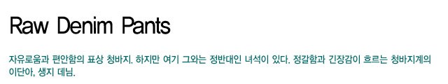 자유로움과 편안함의 표상 청바지. 하지만 여기 그와는 정반대인 녀석이 있다. 정갈함과 긴장감이 흐르는 청바지계의 이단아, 생지 데님.<br><br>[2008년 10월호]