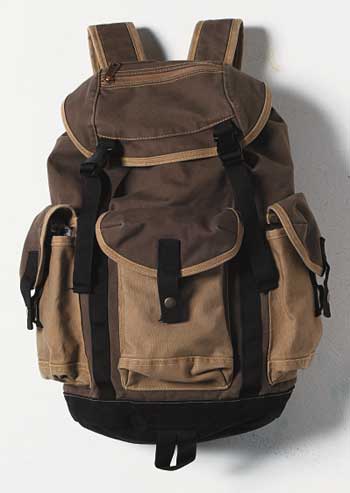 GAP 앞과 옆면에 있는 3개의 넉넉한 포켓은 짧은 여행을 준비하기에 적합하다. 포켓 오픈이 간편하게 디자인된 베이지&브라운 컬러의 백팩 8만7천원 갭 제품. |