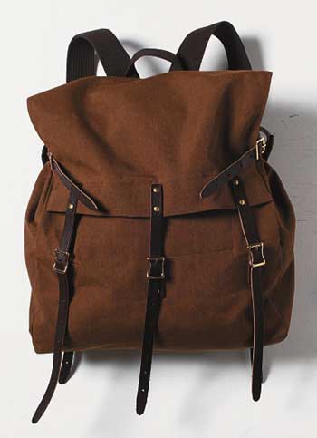 ENGINEERED GARMENTS 견고한 소가죽 벨트 장식만으로도 눈여겨볼 만한 디자인이다. 길이 조절에 따라 다양한 느낌을 표현할 수 있는 브라운 컬러 백팩 39만8천원 엔지니어드 가먼츠 by 샌프란시스코 마켓 제품. |
