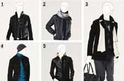 1 블랙 컬러 레더 패딩 베스트 가격미정 다크 쉐도우 by 분더샵 맨, 블랙 컬러 모직 재킷 가격미정 서상영, 그레이&화이트 스트라이프 스웨터 6만9천원 앤듀, 그레이 컬러 머플러 가격미정 시스템 옴므 그레이 컬러 글러브 가격미정 로에베, 그레이 컬러 모직 팬츠 가격미정 엠비오, 스트라이프 양말 가격미정 루츠, 블랙 컬러 앵클부츠 25만원대 레드 윙 제품. 2 니트 소재 내피가 탈착 가능한 블랙 컬러 레더 점퍼 가격미정 후부, 화이트 컬러 셔츠 15만원대 DKNY, 스트레이트 핏 블랙 컬러 진 팬츠 9만원대 앤듀, 그레이 컬러 머플러 가격미정 타미 힐피거, 블랙 컬러 앵클부츠 15만9천원 닥터 마틴 제품. 3 스웨이드 소재의 블랙 더블브레스트 재킷 89만원 존 바바토스, 스트라이프 클레릭 셔츠 가격미정·아가일 체크 스웨터 23만5천원 모두 제이 프레스, 스트라이프 니트 타이 가격미정 타임, 화이트 컬러 머플러 가격미정 DKNY, 그레이 컬러 진 팬츠 9만원대 앤듀, 블랙 컬러 레더 보스턴백 가격미정 MCM, 블랙 슈즈 16만9천원 닥터 마틴 제품. 4 블랙 컬러 스웨이드 점퍼 50만원대 DKNY, 블루 컬러 터틀넥 10만원대 루츠, 그레이 컬러 체크 팬츠 9만원대 갭, 그레이 컬러 비니 12만5천원 C.P. 컴퍼니, 스웨이드 소재 그레이 컬러 토트백 가격미정 발리, 화이트 스니커즈 10만원대 나이키 제품. 5 블랙 컬러 차이니스 칼라 블루종 45만9천원 앤듀, 옐로 컬러 윈드브레이커 가격미정 나이키, 슬림 핏 블랙 진 팬츠 가격미정 지-스타. 벨크로 장식 화이트 앵클 스니커즈 가격미정 디올 옴므 제품. |
