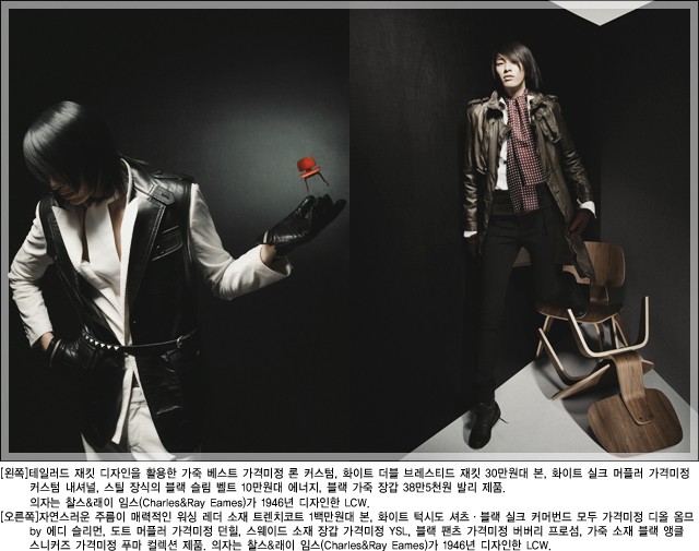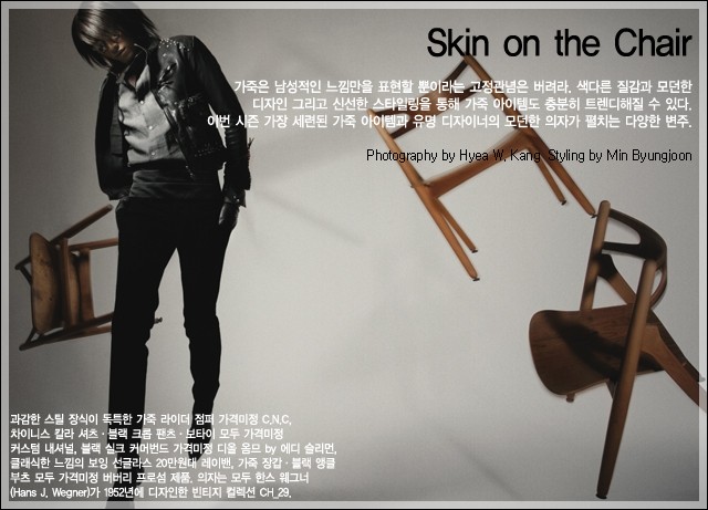 가죽은 남성적인 느낌만을 표현할 뿐이라는 고정관념은 버려라. 색다른 질감과 모던한 디자인 그리고 신선한 스타일링을 통해 가죽 아이템도 충분히 트렌디해질 수 있다. 이번 시즌 가장 세련된 가죽 아이템과 유명 디자이너의 모던한 의자가 펼치는 다양한 변주.<br><br>[2006년 11월호]