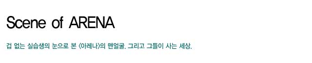 겁 없는 실습생의 눈으로 본 <아레나>의 맨얼굴. 그리고 그들이 사는 세상.<br><br>[2008년 12월호] intern 최지현, 최지혜 CREDIT INFOintern 최지현,최지혜