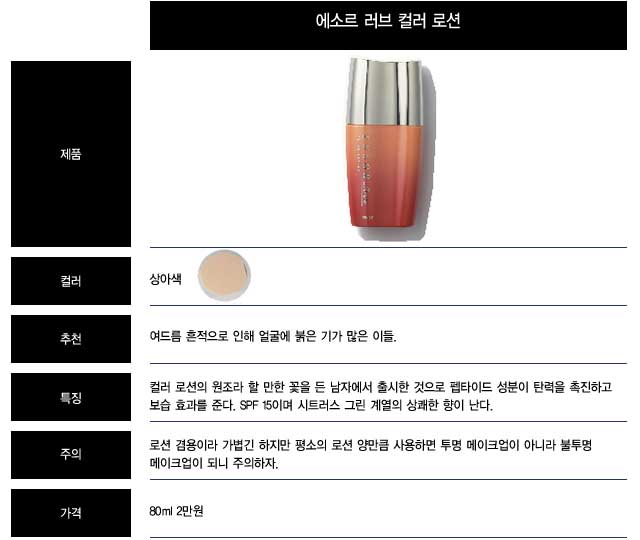2002년 ‘피부가 장난이 아닌데’라는 유행어를 낳으며 시작된 컬러 로션 열풍. 은근 많은 남자들이 이를 이용해 아주 ‘티 나는’ 화장을 했다. 이후 많은 남성 전용 코즈메틱 브랜드에서도 비비 크림을 내놓았다. 걱정스러운 건 남자들이 색도 구분할 줄 모르면서 이 피부 메이크업 시장에 덜컥 뛰어들었다는 점. 각 브랜드의 비비 크림들이 아래와 같이 이렇게 천차만별의 색을 내는데 말이다. 그러니 메이크업에 있어서는 선배인 내가 한마디 훈수하겠다. 여자들처럼 자신의 피부색에 맞는 것을 고르기 위해 적어도 세 번 이상은 손등에 묻혀 테스트를 해보라. 피부 결점을 감추려 하는 메이크업이 되려 피부에 장애를 주는 기막힌 경우가 생기지 않도록 아래 컬러 차트를 잘 활용하자.