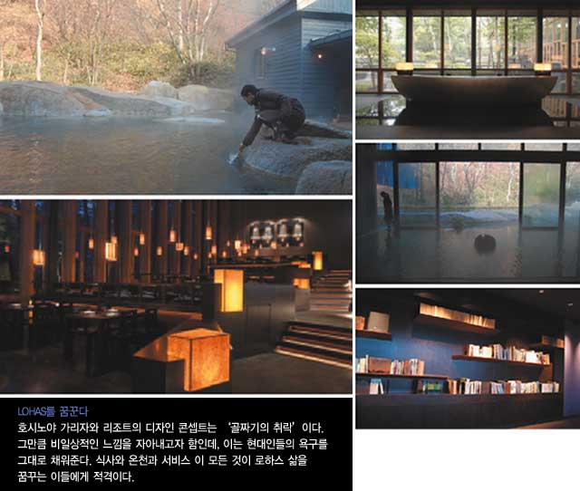 도쿄에서 자동차로 2시간 30분. 신칸센으로 1시간 거리인 가리자와 지역에 자리 잡은 호시노야 가리자와 리조트에 다녀왔다. TV도 없었고, 휴대폰도 터지지 않았지만 대신 그곳엔 정확히 내 머리 위로 쏟아져 내릴 것만 같은 밤하늘의 별이 있었다.<br><br>[2009년 1월호]
