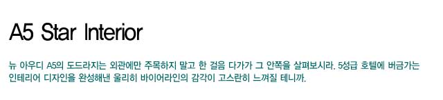 뉴 아우디 A5의 도드라지는 외관에만 주목하지 말고 한 걸음 다가가 그 안쪽을 살펴보시라. 5성급 호텔에 버금가는 인테리어 디자인을 완성해낸 울리히 바이어라인의 감각이 고스란히 느껴질 테니까.<br><br>[2009년 2월호]
