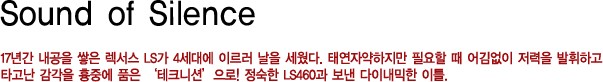 17년간 내공을 쌓은 렉서스 LS가 4세대에 이르러 날을 세웠다. 태연자약하지만 필요할 때 어김없이 저력을 발휘하고 타고난 감각을 흉중에 품은 `테크니션`으로! 정숙한 LS460과 보낸 다이내믹한 이틀.<br><br>[2006년 12월호]