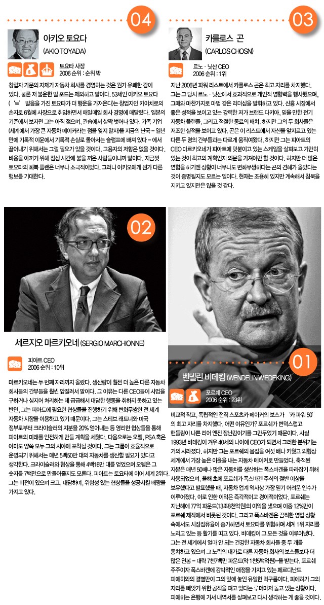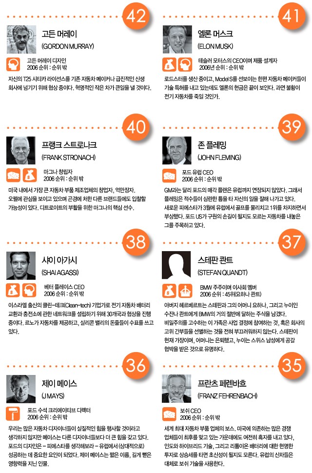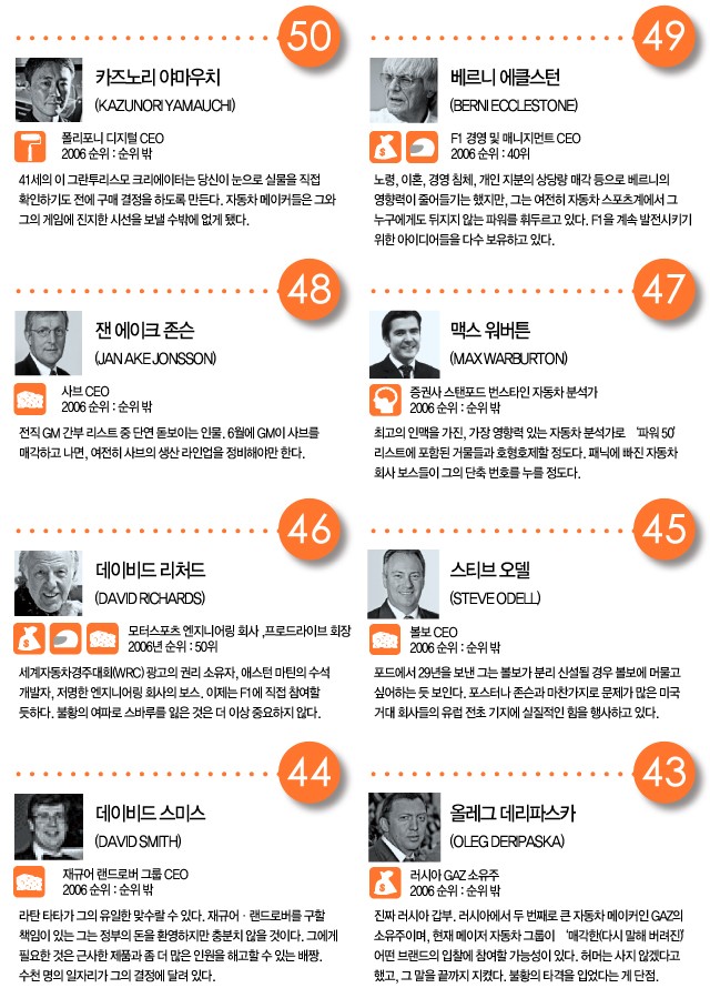 전 세계 자동차 산업을 이끌어가는 사람은 누구인가? 벤 올리버가 톱 50의 면면을 살펴본다.<br><br> CREDIT INFOEDITOR 성범수 WORDS 벤 올리버(Ben Oliver)