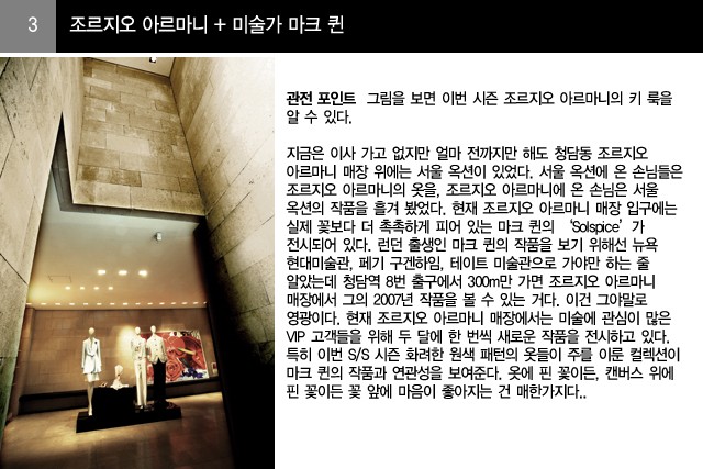 이 네 곳의 매장에 들를 땐, 옷만큼 주의 깊게 봐야 할 작품이 있다. 그리고 그 자리에 그 작품이 있어야 하는 이유도 있다.<br><br> CREDIT INFOEDITOR 김민정 PHOTOGRAPHY 김린용