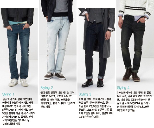 지금부터 얘기하려는 게 학다리처럼 가는 스키니 진에 대한 것은 아니니 거부감 가질 필요 없다. 하지만 트렌드는 절대 한순간에 빨강에서 파랑으로 바뀌지 않는다. 지난 시즌에 스키니 진 팬츠가 유행했다고 해서 바로 다음 시즌에 와이드 팬츠가 유행하는 건 아니라는 얘기다. 그런 면에서 부담스러운 스키니 진의 대안으로 밑위 길이가 짧은 슬림 핏을 권하는 바다. 쉽게 말하자면 허벅지에서 발목까지 자연스럽게 좁아지는 형태로 실제 다리 모양과 가장 흡사한 실루엣이라고 할 수 있다. 이는 시중에서 ‘로 라이즈 슬림 핏(Low Rise Slim Fit)’이라 표기하며 그냥 ‘슬림 핏(Slim Fit)이라고도 한다. 요즘 청바지 브랜드들은 한 가지 바지 핏만 고수하기보다 여러 가지 핏을 다양하게 선보이고 있으므로 이러한 이름을 가진 제품을 찾는 건 그리 어렵지 않다. 단, 한 가지 단점이 있다면 이런 류의 매력에 한번 빠지게 되면 지금 가지고 있는 바지들을 모두 버리고 싶어질 수도 있다는 점이다.