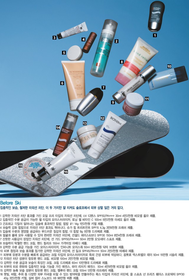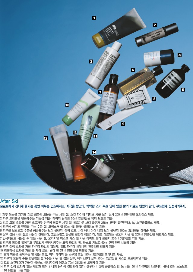 신나는 점프와 바람을 가르는 쾌감이 있는 스키장.생각만으로도 짜릿한 곳이지만, 겨울철 피부 관리와는 상극인 장소이기도 하다.강한 자외선과 극도의 건조함, 피로는 그동안 잘 가꿔온 피부를삽시간에 망칠 수 있다. 특별한 관리가 필요하다.<br><br>[2007년 1월호]