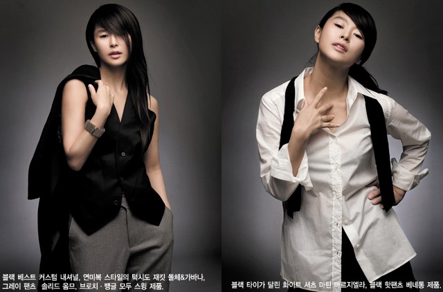 사실 그녀와의 촬영이 시작부터 쉽지 않았음을 고백한다. ‘섹시’ 콘셉트를 위해 준비한 옷들은 애시당초 거절당했고, “굳이 노출이 있어야 섹시한 거냐”는 반문에 어물쩡거리고 말았다. 막연하게 ‘섹시’라는 콘셉트와 어느 수위까지는 노출도 가능할 거라는 확신이 보기 좋게 깨지는 순간이었다. 코믹하고 엉뚱한 미자의 모습은 온데간데없다. 당황할 새도 없이 슛이 들어가고 그녀는 자신의 몸뚱이를 남자 수트 안에 감춘 채 카메라를 응시한다. “<올드미스 다이어리>를 찍으면서 서른을 겪었어요. 감수성이 예민한 편인데, 처음 몇 달은 얼마나 우울했는지 몰라요” 하고 털어놓는다. 여자에게 있어 잊고 싶지만 잊혀지지 않는 것이 바로 나이 아닌가. “미자는 지금까지 해온 역할 중에서 저랑 가장 많이 닮았어요. 실현 가능성은 없지만 오늘도 마음속으로 판타지를 꿈꾸며 살아가거든요” 예지원이라는 배우가 사람들에게 각인된 건 분명 드라마 <올드미스 다이어리> 덕분이다. 엽기발랄한 노처녀의 좌충우돌 캐릭터는 여자들의 절대적인 지지를 얻었고, 남자들은 엉뚱하지만 귀여워 예지원에 대한 재발견이라며 칭찬을 아끼지 않았으니까. 그 작품의 극장판에 출연하면서 데뷔 10년차답게 A4 한 페이지는 족히 넘을 필모그래피를 갖게 된 그녀. “항상 죽기살기로 해요. 뭐든지. 모자라지도, 부족하지도 않게 한다는 게 가장 어렵잖아요.” 시간이 지나자 그녀의 예민했던 신경도 느슨해지면서 무용을 전공한 사람답게 예사롭지 않은 포즈를 선보인다. “지PD 같은 남자가 현실에 있다면 연하라도 상관없을 것 같아요”라며 지극히 개인적인 마음이 개입된 쇼타 콤플렉스를 내비치는 그녀.