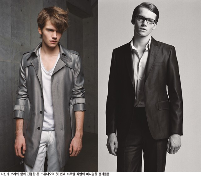 오늘날의 패션은 이미지와 비주얼이 많은 부분을 차지한다. 그래서 새로운 브랜드를 론칭할 때 정확한 아이덴티티를 가진 비주얼을 만들어 대중에게 소개하는 작업은 브랜드의 사활이 걸린 일이라고 할 수 있다. 지난해 말 일본에서 론 스튜디오의 첫 번째 비주얼 작업을 진행했다. 이번 작업에는 사진가 ‘보리’가 참여했는데, 그가 <아레나>를 통해 보여준 자연스러우면서도 미니멀한 감각의 비주얼들이 매력적이어서 이번 작업을 의뢰하게 되었다. 결과물은 역시 성공적이었다. 버버리 프로섬과 프링글 등 세계적 브랜드의 캠페인 메인 모델이었던 톰 기네스를 모델로 기용해 더욱 모던하고 시크한 결과물을 얻을 수 있었다. 모던, 미니멀, 에지를 콘셉트로 하는 론 스튜디오의 이미지를 잘 표현했다.