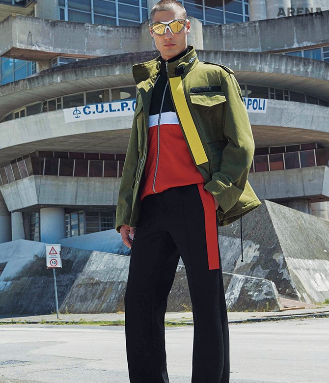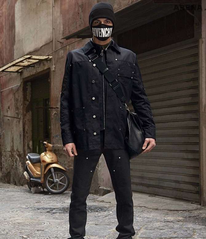 스포티즘, 고딕, 부족 국가 분위기 등으로 요약할 수 있는 지방시의 리조트 컬렉션. 따로 쇼를 하진 않았지만 스타일리시한 룩북 이미지를 공개했다. 모두 나폴리 거리에서 촬영한 것이다. 아프리카의 어느 부족을 연상시키는 화려한 패턴의 룩, 세련된 트레이닝 세트와 로고를 큼지막하게 새긴 마스크를 매치한 모습, 팔콘을 주제로 한 다양한 프린트 등을 소개했다. 셔츠와 스웨트 셔츠, 점퍼의 조합, 후드 점퍼 위에 스프링 코트를 매치하는 등 여러 가지 레이어링 방식 역시 눈에 띈다.