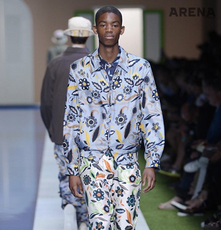 펜디의 2017 S/S 컬렉션은 봄 그 자체다. 화사한 색감, 익살스러운 프린트, 만개한 꽃들로 가득하니까. 그중 머리부터 발끝까지 꽃 문양으로 뒤덮인 룩은 옷을 뛰어넘은, 보는 즐거움이 있다. 평상시에 이걸 어떻게 입나 싶은 이들을 위해 양면으로 만들었는데 반대편은 흙처럼 차분하다. 가격미정.