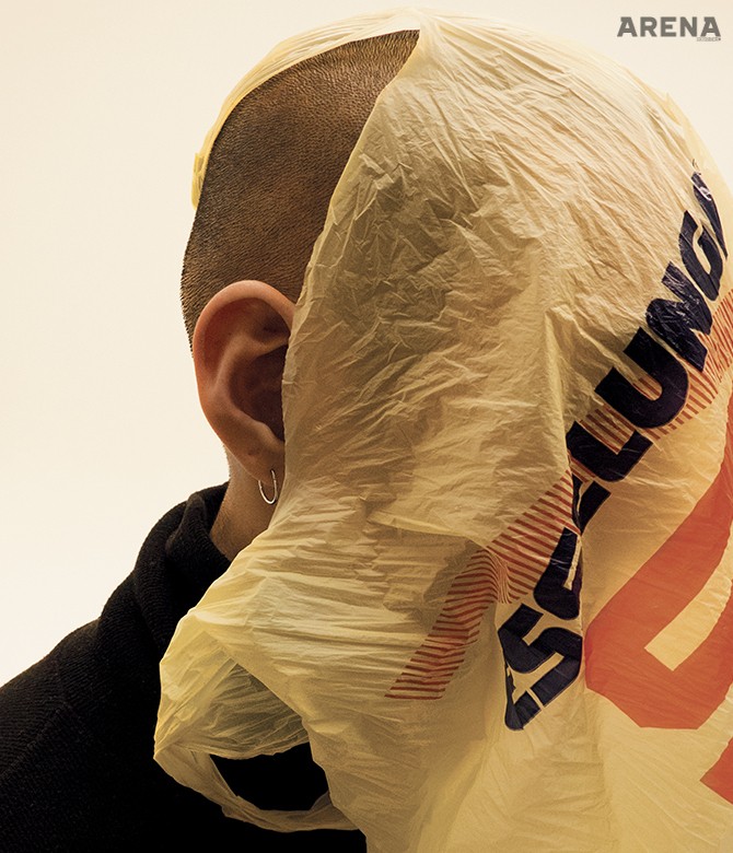 흰색 라인이 들어간 검은색 수트·흰색 티셔츠 모두 가격미정 루이 비통, 목걸이·스니커즈 모두 에디터 소장품.
