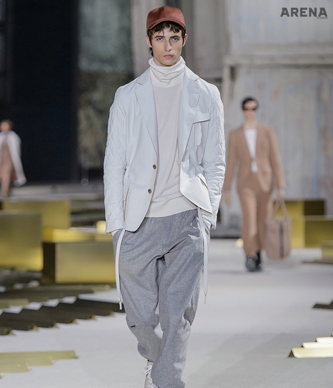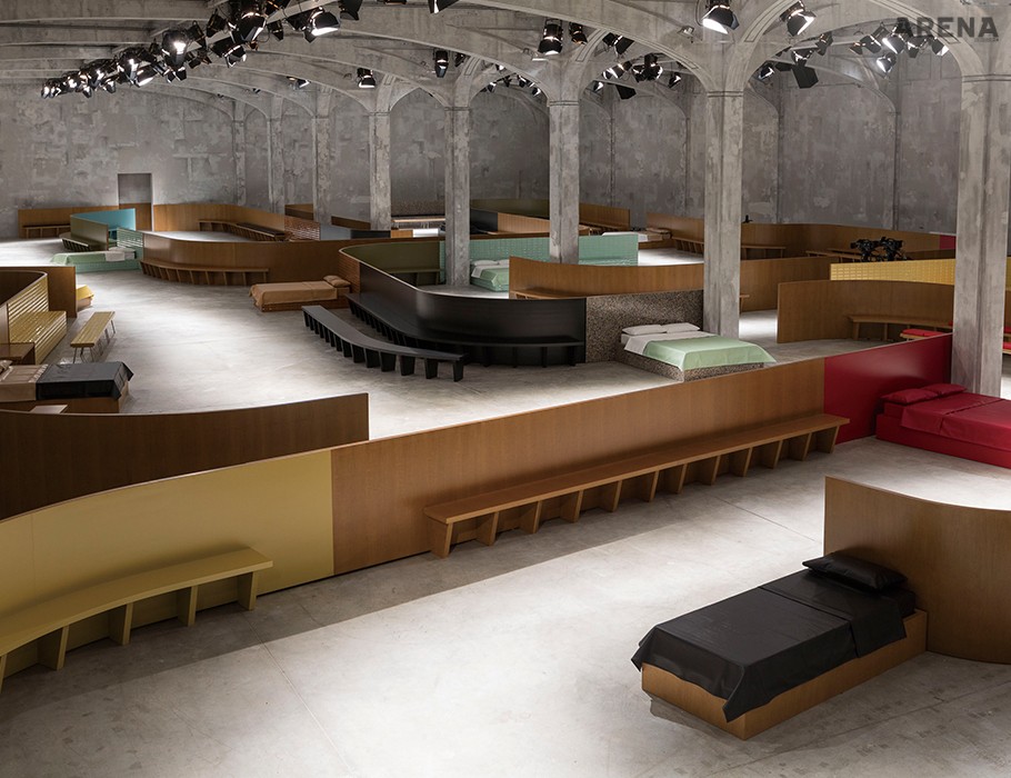 프라다 쇼가 펼쳐지는 공간은 하나의 예술 작품이 된다. 이는 십수 년째 합을 맞춰온 디자인 집단 AMO의 손길 덕이다. 이번에도 역시 머릿속에서 곱씹을 만큼 인상적인 공간을 창조해냈다. 공간을 나눈 나무 칸막이는 모델의 동선이 되기도 하고, 쇼에 참석한 게스트 개개인의 공간이자 그들의 시야를 정의하는 프레임이 되기도 했다. 일상적인 침대와 나무 벤치가 관람석이었던 이번 공간은 기본에 충실하면서 실루엣이 편안한 옷들과 자연스럽게 일치했다.