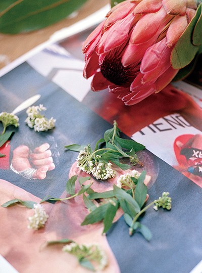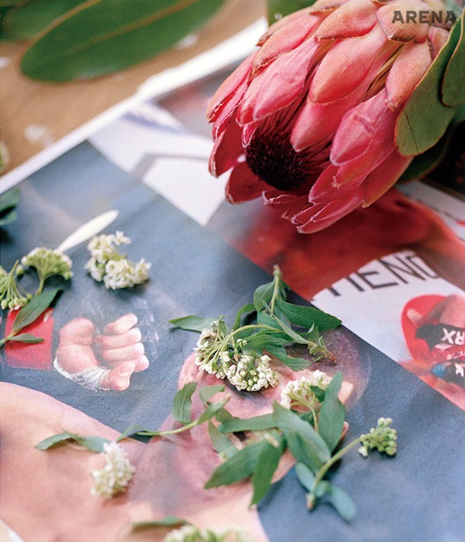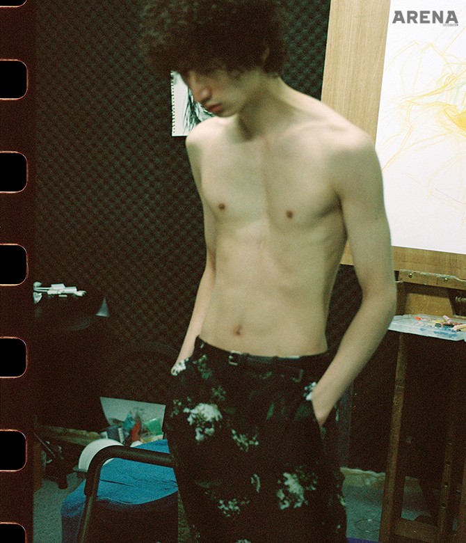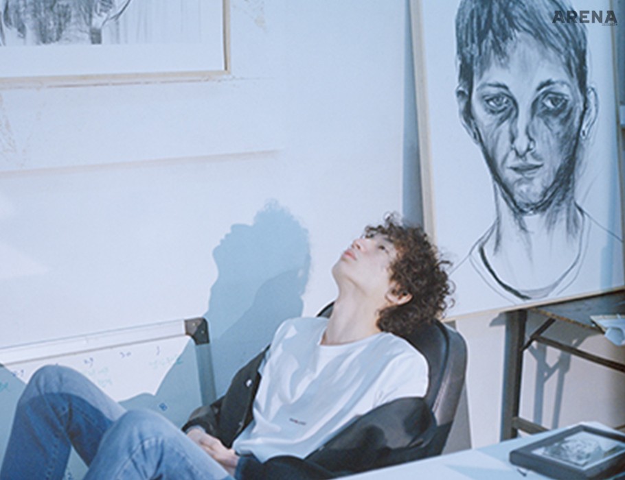 한가운데 로고를 프린트한 흰색 반소매 티셔츠 43만5천원·청바지 89만원·달빛과 물결을 그려 넣은 새틴 블루종 3백25원 모두 생 로랑 제품.