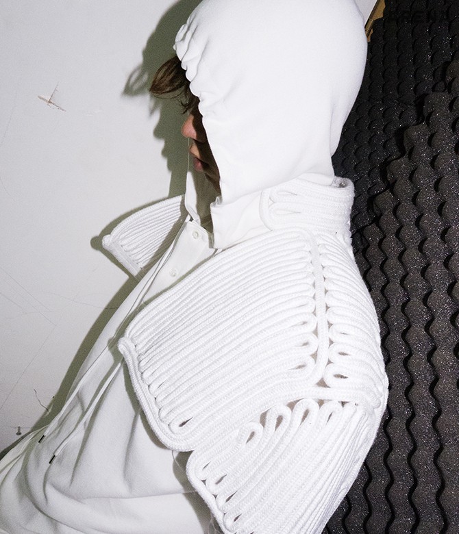 후드가 달린 흰색 반소매 피케 셔츠 21만8천원 라코스테 뉴욕 컬렉션 제품. 밑단에 작은 폼폼을 장식한 흰색 드레스 셔츠·흰색 견장 모두 가격미정 버버리, 레터링 패턴 반바지 7만9천원 아디다스 오리지널스 제품.
