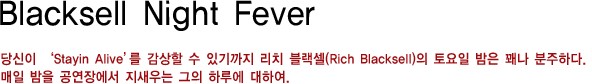 당신이 `Stayin Alive`를 감상할 수 있기까지 리치 블랙셀(Rich Blacksell)의 토요일 밤은 꽤나 분주하다.매일 밤을 공연장에서 지새우는 그의 하루에 대하여.<br><br>[2007년 3월호]