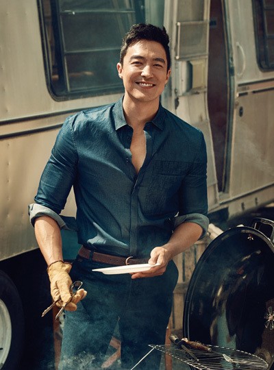 우리는 분명 서울 성수동에서 촬영 준비를 하고 있었다. 그런데 다니엘 헤니가 나타나자, 그곳은 순식간에 캘리포니아 LA의 어느 동네로 변해버렸다. 환하게 내리쬐던 봄 햇살과 헤니의 여유로운 미소가 만들어낸 마법 같은 순간이었다. 할리우드에서 <크리미널 마인드: 국제범죄수사팀> 새 시즌 촬영에 들어간 세계적 배우, 다니엘 헤니가 이곳을 찾은 데는 이유가 있었다. 전 세계에서 가장 인기 많은 버거 브랜드, 맥도날드가 새롭게 선보이는 시그니처 버거의 특별한 만남을 화보로 담아내기 위해서였다. 다니엘 헤니는 프리미엄 수제 버거의 고급스러움을 캐주얼하고 ‘쿨’하게 보여줄 수 있는 최적의 모델이다. 마침 <나 혼자 산다>에서 그릴에 고기를 굽고 요리하던 헤니의 모습과도 딱 맞아떨어진다. 포토그래퍼 안주영과 함께 스튜디오 정원에서 야외 촬영을 시작한 그는 시종일관 여유로웠다. 점심시간을 끝내고 사무실로 돌아가던 여성들이 헤니를 발견하고 어김없이 환호성을 질렀다. 그는 특유의 미소를 지으며 손에 들고 있던 시그니처 버거를 살짝 흔들었다. “햄버거 먹고 갈래요?” 그의 장난기 어린 한마디에 여성들은 크게 환호했다.