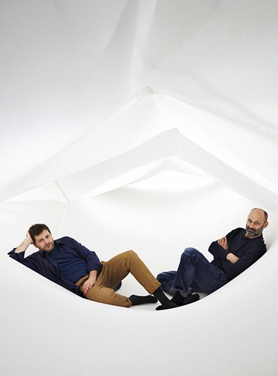 늘 패브릭으로 작업하고 싶었다. 이번에 사용한 패브릭은 무대 디자인이나 연극에 많이 쓰는 특수 제작 패브릭이다. 사람의 무게를 충분히 지탱할 만큼 힘이 좋다. 우리는 모두 무대 디자인을 해본 디자이너다. 천 구조물 작업은 처음 해보지만, 사실 천은 우리에게 가장 익숙한 재료다.