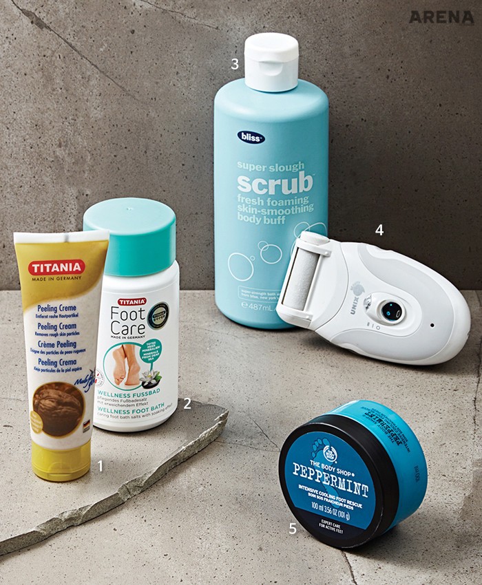 2 지중해산 사해 소금으로 만든 족욕제는 미온수에 풀어 사용하면 각질 연화 작용이 탁월하다. 동시에 노폐물 배출을 돕고 풍부한 미네랄 성분을 함유해 발을 매끈하게 가꿔준다. 족욕 소금 250g 1만4천원 티타니아 제품.