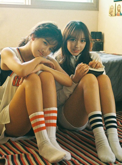 미기가 입은 분홍색 후디는 앳코너, 쇼츠와 양말은 모두 스타일리스트 소장품.