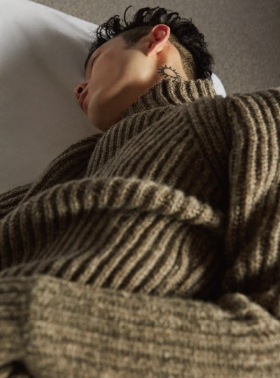 골이 굵은 연갈색 터틀넥 니트 54만5천원 드 본 팩쳐 by 1LDK 제품.