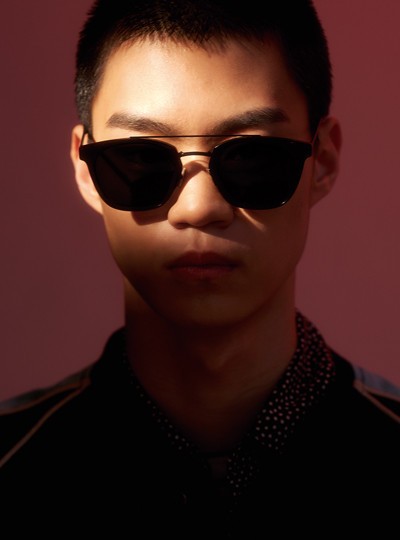 균형 잡힌 구조의 투 브리지 선글라스가 주는 진중하거나 복고적인 인상.