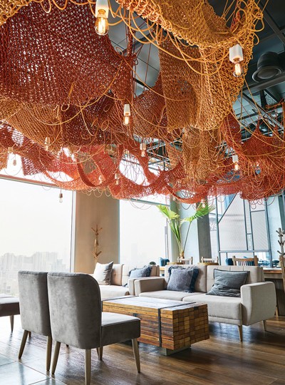 먼저 호텔 입구에 들어서자마자 기다랗게 늘어선 줄을 볼 수 있다. 글로벌 캐릭터 브랜드 ‘라인 프렌즈(LINE FRIENDS)’의 플래그십 스토어가 L7 홍대에 입주해 있기 때문이다. 또 컨템퍼러리 아트 갤러리 ‘피프티 피프티(FIFTY FIFTY)’, 시푸드 레스토랑 ‘빅가이즈 크랩(BIG GUY’S CRAB)’, VR 테마 파크 ‘히트브이알(HIT VR)’ 등 다채로운 매장들이 입점해 호텔에 묵는 동안 심심할 걱정을 덜어준다. 1층의 감각적인 그래피티는 L7 홍대의 지향점을 보여준다. 세계적인 그래피티 아티스트 범민(BFMIN)의 작품으로 홍대 거리의 느낌을 표현한 것. 레스토랑과 라운지 입구의 천장에 걸친 로프 소재 작품은 홍대 출신 아티스트 이광호 작가가 탄생시켰다. 앞으로도 신진 디자이너, 작가, 화가들에게 다양한 전시 기회를 제공해 호텔 공용 공간에서 신선한 아트 콘텐츠를 만나볼 수 있을 거라고.