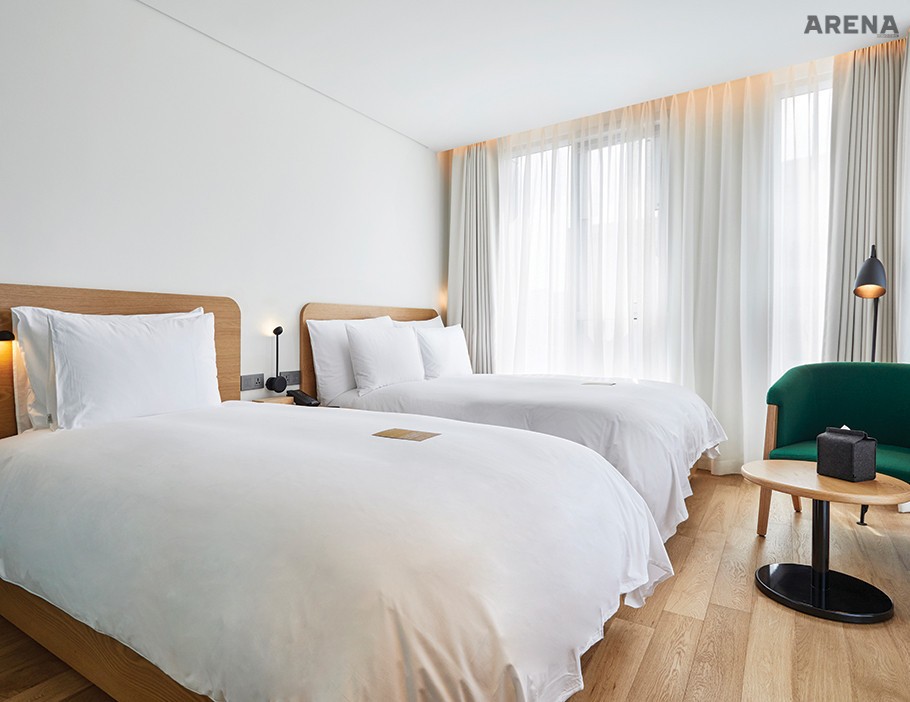 객실은 바닥 자재나 소품 등의 디테일이 조금씩 다르다. 다양한 선택지가 다양한 취향을 충족시켜준다. 16층 가든 펜트 하우스는 야외 테라스에 자쿠지 시설을 갖춰 이곳만 찾는 단골이 꽤 된다. 2층엔 토니 정 셰프가 운영하는 ‘앙스모멍’ 레스토랑이 있다. 탁 트인 공간에 식물이 가득 차 기분까지 쾌청해진다. 여기선 어떻게 찍어도 인생샷이 나온다는 소문이 인스타그램을 강타했다. 해시태그로 검색해보니 진짜 인생샷들이 주르륵 나오는 걸 보면, 그 소문이 거짓은 아닌 것 같다.