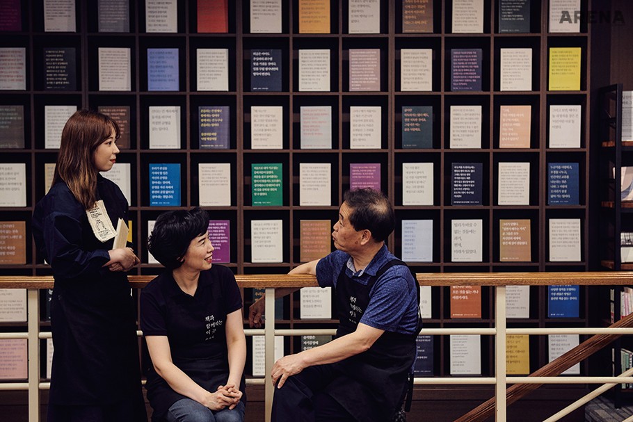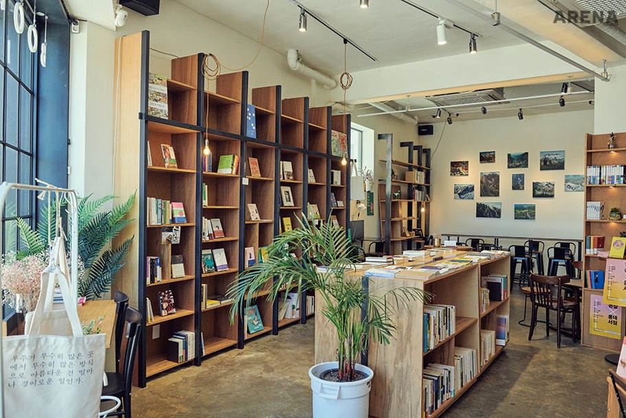 문우당 서림(@moonwoodang_bookshop)은 1984년에 문을 열었다. 글월 문(文), 벗 우(友), 집 당(當) 자를 써서 문우당이다. 이민호 대표가 35년 전, 약 16㎡(5평) 남짓한 공간으로 시작한 문우당은 점차 규모를 늘려 지금의 모습이 됐다. 2000년에 접어들며 집집마다 본격적으로 인터넷을 사용하고 서점은 사양 사업이라 여겼던 시대에도 문우당은 오히려 매출이 늘었다. “옛날 동네 서점들은 모두 쇼윈도 쪽에 잡지 포스터를 붙였어요. 문우당도 처음엔 그랬는데, 언젠가 아버지가 그걸 다 떼어버리고 그 창가에 의자를 뒀대요. 책 읽는 사람들의 모습이 보였으면 좋겠다 싶어서요. 제가 아주 어린 아기일 때의 일이죠. 아버지는 좀 다르게 하시는 걸 좋아했나 봐요. 전자 포스 시스템도 속초에서 가장 처음 도입하셨고, 손님들에게 문우당이라는 이름을 적은 종이로 책을 싸주시기도 했죠. ‘브랜딩’이라는 개념을 모르셨을 텐데 말이에요.” 문우당 서림의 디렉터 이해림이 말했다. 이해림은 문우당 서림에서 각종 기획과 디자인을 디렉팅 및 큐레이팅하고 있다. 설립자인 이민호 대표의 딸이다. 확고한 신념을 쥐고 고향으로 돌아온 다른 ‘리터너’들에 비하면 이해인은 ‘어쩌다 보니’ 속초에 돌아온 것에 가깝다. “시각 디자인을 전공했고 디자이너로 일했어요. 아버지가 서점의 오래된 구석을 바꾸고 싶다며 도움을 청하셨어요. 조금씩 도와드리다 결국 두 팔 걷어붙였죠.” 문우당 서림은 이해인 디렉터의 진두지휘 아래 리뉴얼을 진행하며 멀끔한 새 옷을 입었다. 그는 문우당 서림의 새 로고도 디자인했다. “아버지의 서점은 단지 책만 파는 곳이 아니었어요. 사람들이 모이고 나누고 즐기고 머무는 사랑방에 가까웠다는 생각을 하게 됐습니다. 문, 우, 당. 이 글자 사이에 우리의 정체성이 담겨 있다고 생각했어요.”