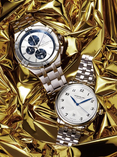 시계 곳곳 디테일을 찾아보는 재미가 있다. 먼저 다이얼 중앙에서 6시 방향으로 살짝 내려오면 몽블랑 엠블럼이 눈에 들어온다. 이를 중심으로 퍼져 나가는 스타 기요셰 패턴은 일렁이는 물결처럼 아름답고 오묘하다. 세컨드 핸즈의 끝부분에서도 브랜드 엠블럼을 발견할 수 있는데 크기는 작지만 다이얼 위에서 가장 바쁘게 움직여 존재감이 남다르다. 유백색 다이얼과 깨끗한 빛이 도는 스테인리스 스틸, 거기에 포인트로 사용한 푸른색 핸즈의 조화는 시계가 간직한 지적인 이미지를 배가한다. 오토매틱 무브먼트 칼리버 MB 24.01로 구동하며 42시간 파워 리저브가 가능한 스타 레거시 데이트 오토매틱 4백10만원대.