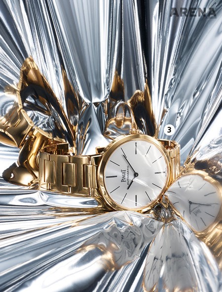 고심 끝에 골드 워치를 고른다면 이 정도는 돼야 하지 않을까? 날렵한 핸즈며 간결한 인덱스, 뽀얀 흰색 오팔 다이얼에 진중한 광택의 18K 핑크 골드 케이스까지. 시계를 구성하는 모든 요소는 어디 하나 들뜬 구석이 없다. 거기다 3.5mm의 자체 제작 무브먼트 534P를 탑재해 두께가 7.9mm에 불과하다. ‘골드 워치!’라고 과시하는 시계보단 셔츠 사이로 은은한 오라를 내뿜는 이런 시계야말로 성공한 남자의 표본. 진짜 고수인 거다. 다이얼 사이즈 38mm의 알티플라노 골드 브레이슬릿 컬렉션 4천1백만원대.