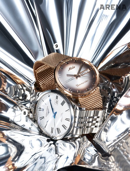 론진은 지난해 창립 1백85주년을 맞아 새로운 컬렉션 ‘레코드’를 선보였다. 레코드 컬렉션의 모든 시계는 스위스 공식 크로노미터 인증기관(COSC)에서 크로노미터 인증을 받은 론진 최초의 모델들이다. 그중에서도 브랜드의 강단 있는 디자인과 혁신을 가장 잘 담은 모델은 사진 속 시계다. 푸른색 핸즈와 화이트 매트 다이얼, 스테인리스 스틸이 조화를 이뤄 론진만의 세련된 품격이 느껴진다. 기술적인 혁신은 시계 내부에 있다. 최근 스와치 그룹의 트렌드에 맞춰 실리콘 밸런스 스프링을 탑재한 무브먼트를 사용한 것. 덕분에 자기장의 영향에서 자유로운 것은 물론 정확성까지 높아졌다. 다이얼 사이즈 40mm의 레코드 2백49만원.