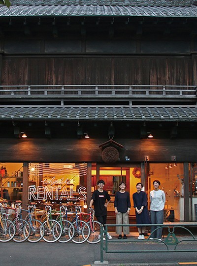 야나카에서 가장 먼저 들러봐야 할 곳은 ‘도쿄바이크 렌털스 야나카(Tokyobike Rentals Yanaka)’다. 3백 년 전통의 유명한 주류점 ‘이세고’ 본점이 있던 자리에 2017년 봄, 일본의 자전거 브랜드 ‘도쿄바이크’의 렌털 및 라이프스타일 스토어로 문을 열었다. 90년 정도 된 목조 건물에 당시 주류점의 간판과 소품을 곳곳에 남겨두었다. 그러면서도 모던하고 트렌디한 공간을 완성했다. 입구에 매달린 스기다마(전나무 가지로 만든 공 모양 장식), 커다란 태엽식 시계, 앞으로도 백 년은 거뜬할 것 같은 튼튼한 대들보 아래에 전체적인 톤을 고려해 제작한 선반에는 자전거용품 및 잡화들이 놓여 있다. 가게 앞에 진열된 자전거는 1시간 단위부터 대여할 수 있다. 스태프들이 친절하게 근처의 가볼 만한 곳을 추천해주니 목적지 설정도 문제없다. 바 스타일 카페에서는 커피를 비롯해 크래프트 맥주, 그리고 몇 가지 니혼슈를 즐길 수 있다. 원래 있던 주류점은 도보 10분 거리에서 지금도 영업을 하고 있다. 그곳에서 각각 다른 스타일의 니혼슈를 선정해 저렴한 가격으로 선보인다. 단지 인테리어 요소만을 남겨둔 것이 아니라 그곳의 술을 취급함으로써 장소 자체의 역사를 이어가고 있는 것이다.