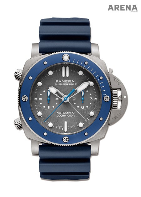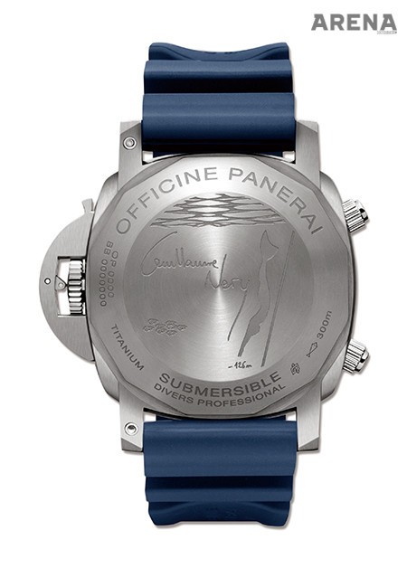 지난해 파네라이는 브랜드의 정체성을 대변하는 빛, 디자인, 바다, 혁신 4개 키워드를 주제로 진행한 파네라이 트레이츠(Panerai Traits) 프로젝트에서 프랑스 출신의 프리다이버 기욤 네리(Guillaume Néry)를 세 번째 주제 ‘바다’의 주인공으로 단편 영화를 제작한 바 있다. 그리고 이를 기념해 기욤 네리에게 헌정하는 섭머저블 크로노 기욤 네리 에디션(PAM00982)를 선보였다. 프로젝트 이후 브랜드 홍보대사로 활동하고 있는 기욤 네리의 이름을 단 전문 다이버 시계로, 약 300m까지 방수가 가능하며 지름 47mm의 육중한 티타늄 케이스에는 블루 세라믹 단방향 회전 베젤을 장착했다. 스크루 백에는 기욤 네리의 서명과 함께 그의 마지막 다이빙 기록 126m를 새겨 넣었다. 플라이백 크로노그래프 기능을 탑재했으며, 3일간의 파워 리저브를 제공하는 P.9100 오토매틱 칼리버를 장착했다.