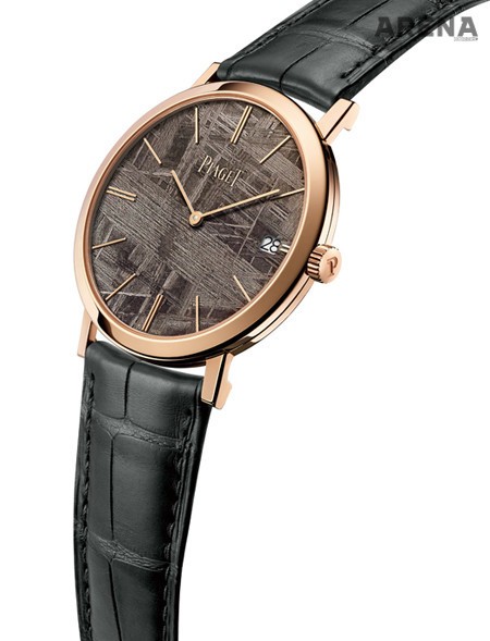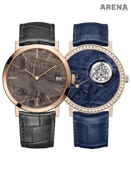 울트라-신 무브먼트 분야에서 놀라운 기록을 수립해온 피아제는 독보적인 보석 세팅 기술은 물론, 우주에서 떨어진 운석을 사용해 하드 스톤의 범위를 더욱 넓힌 새로운 알티플라노를 제안했다. 피아제의 베스트셀러이자 스테디셀러인 알티플라노 컬렉션의 정체성을 고스란히 살린 이 시계는 짙은 회색의 운석 다이얼이 특징이다. 시, 분, 날짜 기능만 간결히 담은 다이얼은 운석의 오묘한 격자무늬를 오롯이 감상하기에 안성맞춤. 지름 40mm의 케이스는 두께가 3mm밖에 되지 않는 피아제 울트라-신 셀프 와인딩 칼리버 1203P를 품고 있다. 베젤에 다이아몬드를 세팅해 화려함을 더한 투르비용 모델도 함께 공개했는데, 28개만 제작한다.