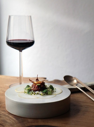 오너 셰프인 최수연은 프랑크푸르트에서 왔다(한국 기업들이 많은 프랑크푸르트는 독일 내 한식 수준이 가장 높은 도시다). 그녀의 동생은 베를린에서 유일한 파인 다이닝 일식을 맛볼 수 있는 시오리를 운영한다. 두 사람의 어머니는 경남 김해에서 활동하는 요리 연구가다. 이 세 가지 사실만으로도 쵸이(Choi)에 가야 할 이유로는 충분하다. 가스트로 바를 표방하기에 메뉴부터 남다르다. 식사를 즐기려면 ‘신선’ ‘선비’ ‘수라’ 등 4개의 디시로 구성된 세트 메뉴를 주문한다. 구절판, 모둠전 등의 아 라 카르테(A La Carte)는 와인과 함께 즐기는 안주 메뉴다. 굉장히 고전적인 이름과 메뉴지만 갈비찜과 튀긴 모차렐라 치즈를 얹은 대파 요리를 낸다든가, 팜 캐비지 같은 현지의 계절 채소를 한국식 나물처럼 무쳐 내는 등의 믹스 매치도 감행한다. 쵸이의 진가를 알려주는 메뉴는 구절판이다. 재료 하나하나를 섬세히 다듬고 데치고, 맛과 색깔, 식감을 모두 살려 조리해 감동을 준다.