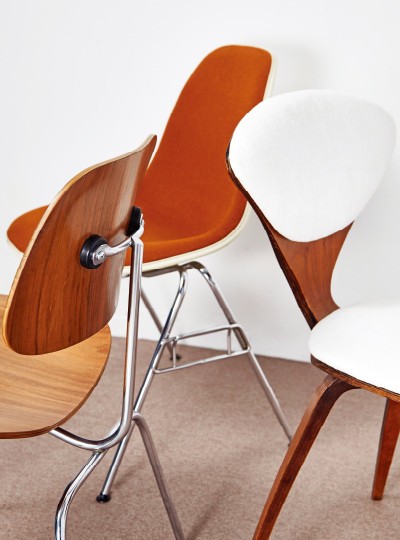 찰스 & 레이 임스가 디자인하고 비트라에서 생산한 DSS 셸 체어. 1960년대에 생산되었다. 허먼밀러사의 패브릭 디렉터였던 알렉산더 지라드가 디자인한 홉색 원단이 사용되었다.