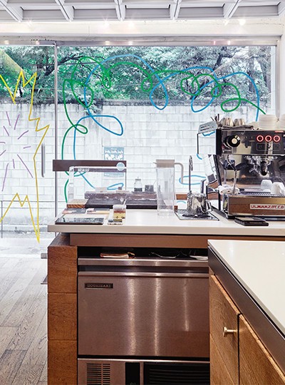 그러니까 카페를 찾는 손님들이 안과 밖 어디서든 자유롭게 커피를 즐기길 원했다. “지나는 길에 잠깐 들러 커피를 즐기거나, 카페 앞에 편하게 걸터앉아 시간을 보내길 바랐어요. 때론 카페에서 나오는 음악에서 벗어나 듣고 싶은 음악을 밖에서 즐기기도 하고요. 막힌 공간을 벗어나 그늘 아래서 커피를 마시기도 하고. 그런 공간이 되길 바랐죠.”