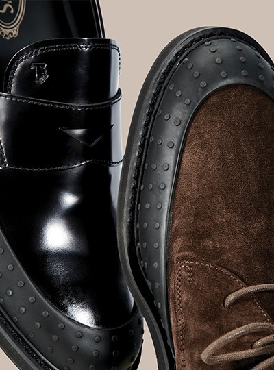 브랜드의 유산과 전통을 어떻게 해석하고 확장할 것인가. 이에 대한 모범 답안은 토즈를 보면 된다. 드라이빙 슈즈 밑창의 고미노 페블을 다양하고 창의적인 방식으로 활용하고 있기 때문에. 러버 페블을 어퍼에 두른 디자인은 굉장히 토즈다우면서도 새롭다. 검은색 가죽 로퍼·갈색 스웨이드 레이스업 슈즈 모두 가격미정 토즈 제품.
