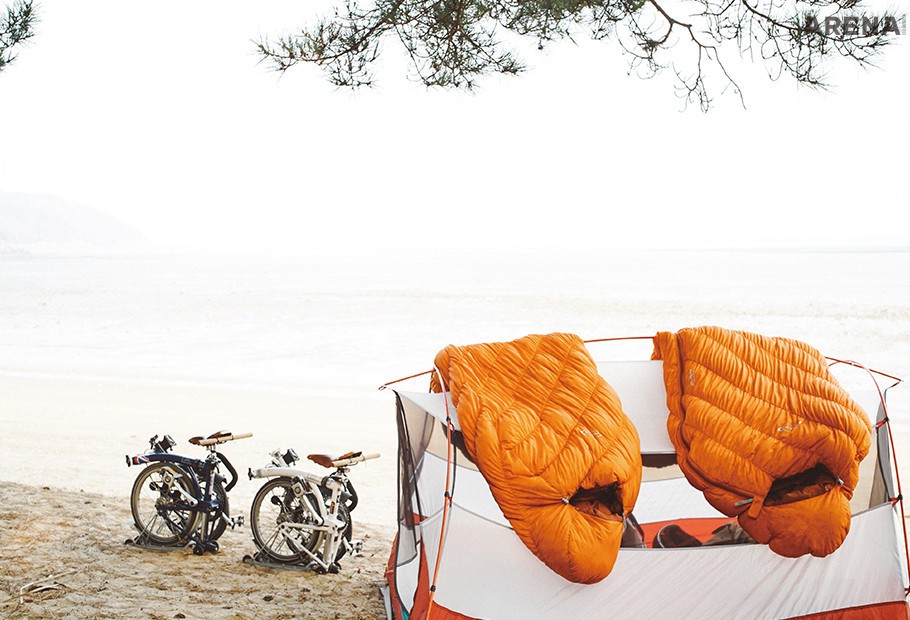 활동적인 브롬톤 라이딩과 정적인 캠핑의 조합은 떠남과 머무름을 동시에 만끽할 수 있다는 장점이 있다. 두 가지 액티비티를 함께 누릴 수 있다는 점도 물론 좋고. 특히 작게 접히는 브롬톤은 대중교통이나 자동차를 이용할 때 무척 편리하다.